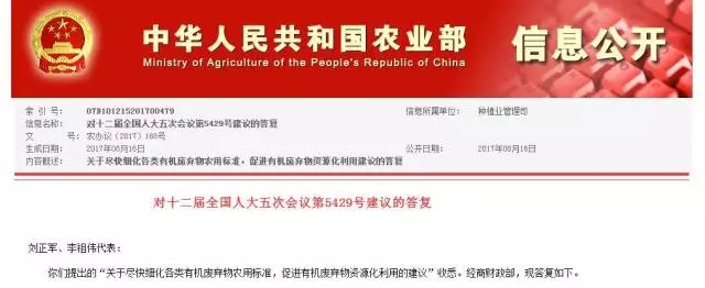 8月16日,農(nóng)業(yè)部公開了對(duì)十二屆全國人大五次會(huì)議第5429號(hào)建議的答復(fù),對(duì)劉正軍、李祖?zhèn)ゴ硖岢龅摹瓣P(guān)于盡快細(xì)化各類有機(jī)廢棄物農(nóng)用標(biāo)準(zhǔn),促進(jìn)有機(jī)廢棄物資源化利用的建議”做了三方面詳細(xì)反饋。 來源:農(nóng)業(yè)部一、關(guān)于有機(jī)廢棄物制備農(nóng)肥的相關(guān)標(biāo)準(zhǔn)有機(jī)肥標(biāo)準(zhǔn)是規(guī)范有機(jī)肥市場(chǎng),促進(jìn)有機(jī)肥產(chǎn)業(yè)健康發(fā)展的重要保障。...