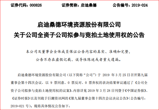 2019年3月28日,啟迪桑德環(huán)境資源股份有限公司(下文簡稱“啟迪桑德”)發(fā)布公告,公司全資子公司宜昌桑德置業(yè)有限公司為滿足未來業(yè)務發(fā)展及辦公需要,擬以自有或自籌資金參與競拍宜昌市自然資源和規(guī)劃局以掛牌方式出讓宜土網(wǎng)(2019)9 號地塊的國有建設用地使用權。 公告顯示,地塊...