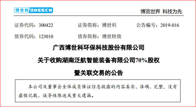 日前,廣西博世科環(huán)??萍脊煞萦邢薰?簡(jiǎn)稱(chēng)“博世科”)發(fā)布公告,公司擬收購(gòu)西藏廣博環(huán)保投資有限責(zé)任公司持有的湖南泛航智能裝備有限公司(簡(jiǎn)稱(chēng)“泛航裝備”)70%股權(quán)。本次收購(gòu)?fù)瓿珊?,泛航裝備將成為公司的控股子公司。 公告顯示,標(biāo)的公司泛航裝備成立于201...