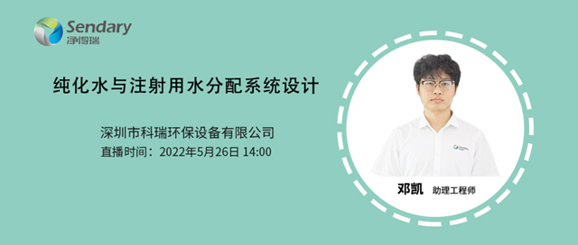 5月26日下午14:00,由凈得瑞技術(shù)直播主講人鄧凱為大家?guī)淼摹都兓c注射用水分配系統(tǒng)設(shè)計》主題直播,將在制藥網(wǎng)、環(huán)保網(wǎng)及凈得瑞微信視頻號同步開播。圖一 《純化水與注射用水分配系統(tǒng)設(shè)計》點擊圖片進入直播間 本次直播內(nèi)容介紹: 1、品牌介紹——主營產(chǎn)品、系統(tǒng)服務(wù) 2、法規(guī)要...