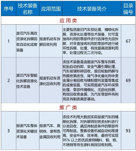 《國(guó)家工業(yè)資源綜合利用先進(jìn)適用工藝技術(shù)設(shè)備目錄(2021年版)》供需對(duì)接指南之一——報(bào)廢汽車拆解資源化利用